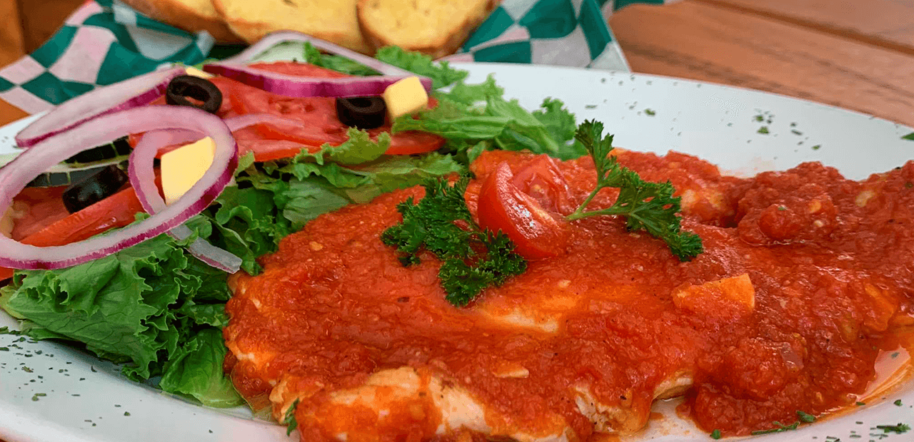 Acompañe su platillo de una de nuestras guarniciones de ensalada, fetuccini Alfredo, papas o verduras al vapor.